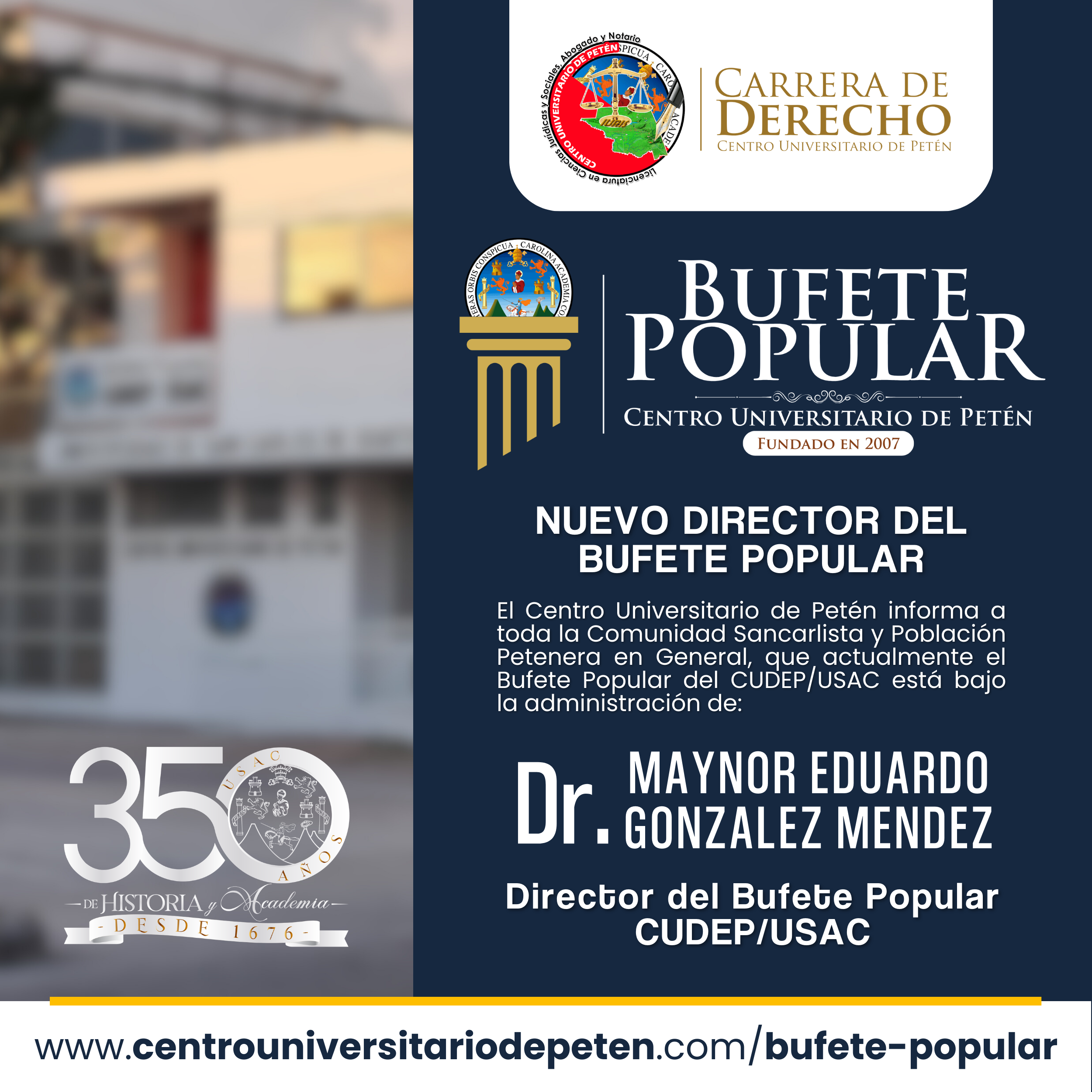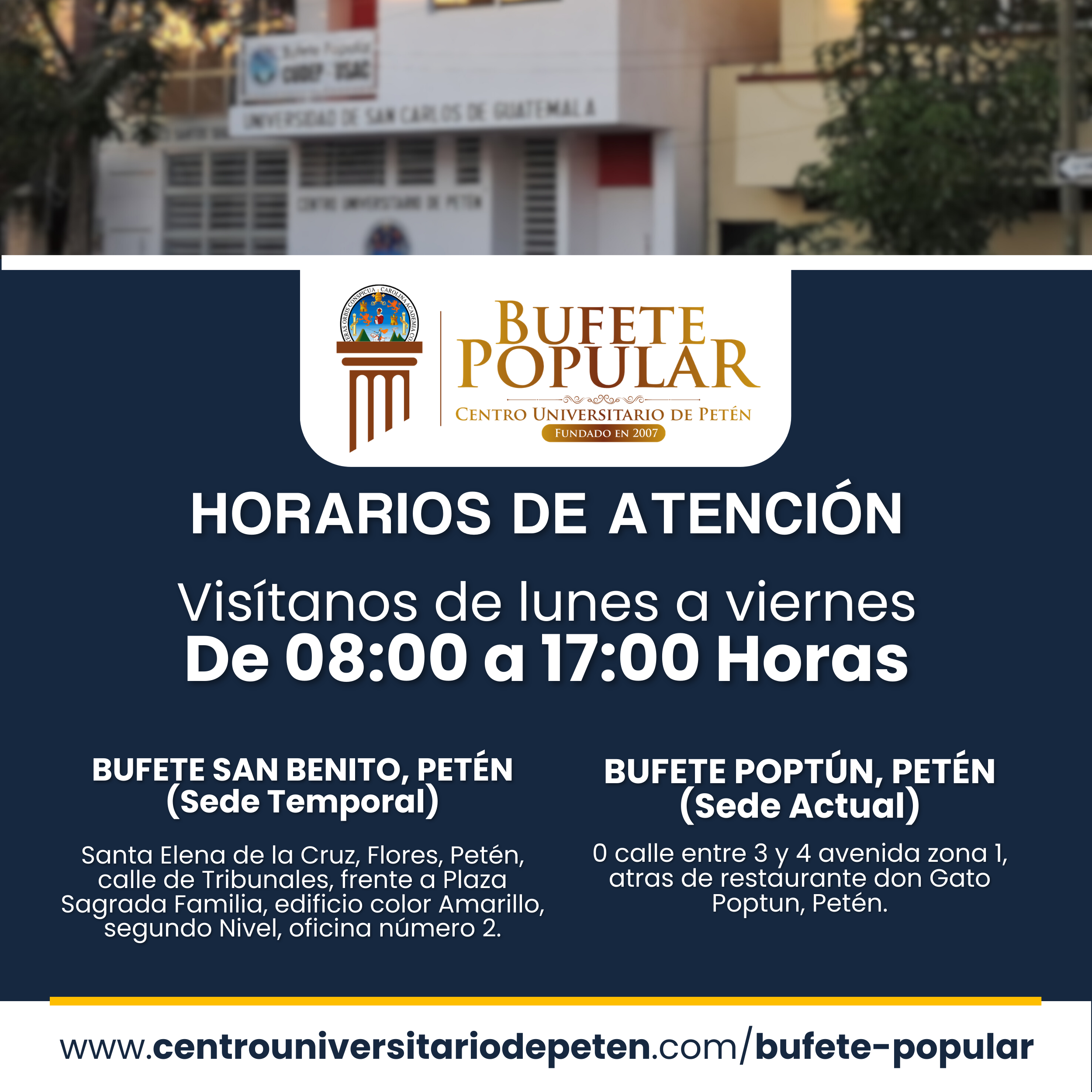 En el siguiente botón podrás comunicarte con el Director del Bufete Popular del Centro Universitario de Petén para toda gestión, será un gusto atenderte: